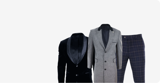 Cavani Carnegi - Férfi 3 darabos sötétkék tweed kockás öltöny, 1920-as évekbeli vintage stílusban