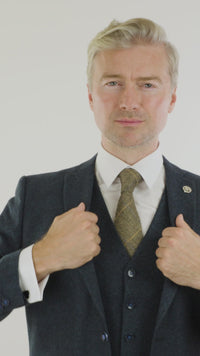 * Klasszikus, 1920-as évekbeli halszálkás tweed öltöny, testreszabott szabással (a karcsúsított és a normál szabás között)