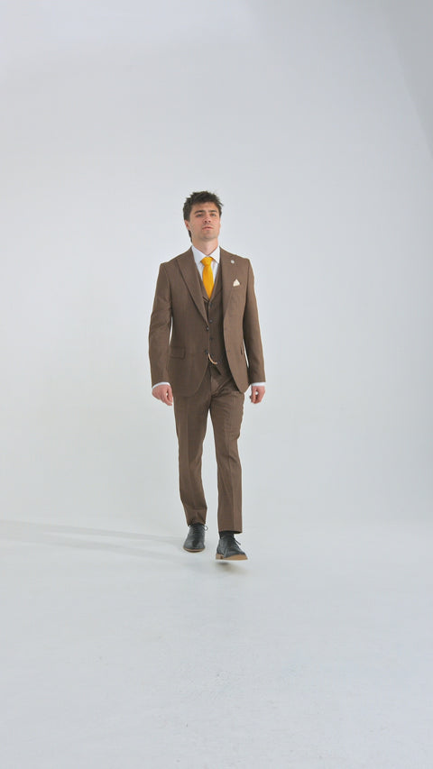 James Férfi 3 részes, sima, barna öltöny klasszikus szabással