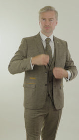 Tölgybarna halszálkás tweed háromrészes öltöny